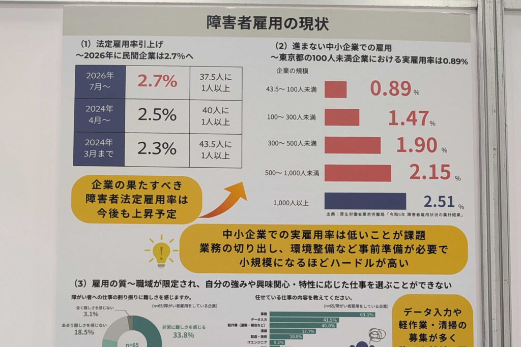 本イベントは、「障害者就職面接会」「職場体験実習面談会」「普及啓発イベント」の三つの催しを通して、障害のある方と企業とのマッチング支援、および障害者雇用への理解促進を目的として開催されたものです。